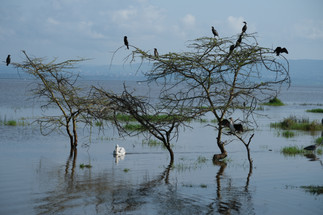 Wir geniessen die spektakuläre Aussicht von der Lodge auf den Lake Nakuru. Der See ist ein Paradies für Wasservögel - Pelikane in rauen Mengen. Kormorane. Fischadler.